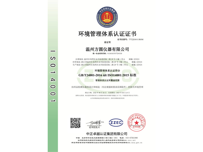 環(huán)境管理體系認證證書